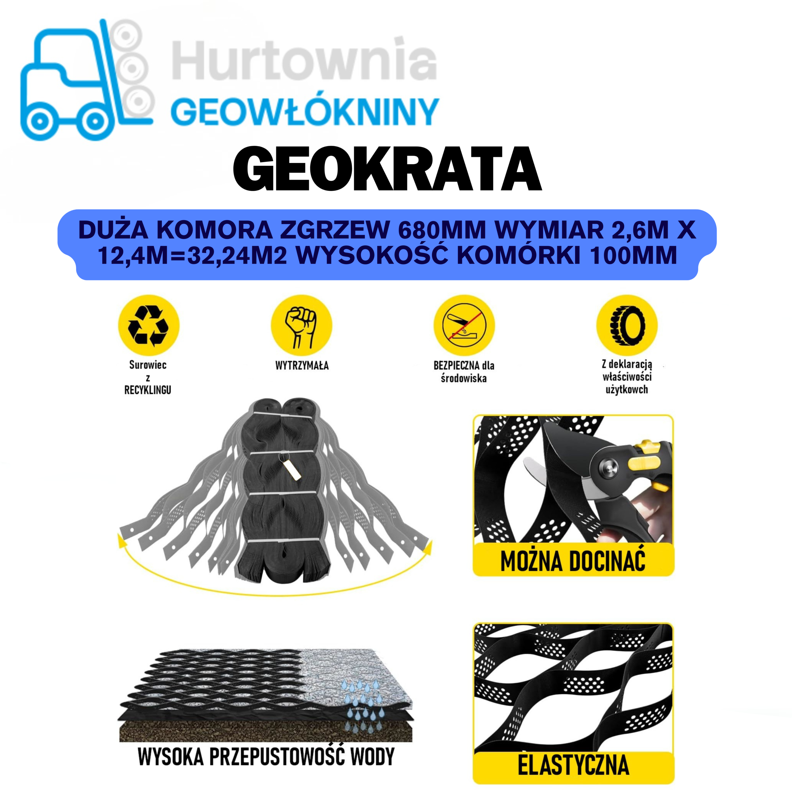 GEOKRATA D.K-Duża Komora Zgrzew 680mm wymiar 2,6m x 12,4m=32,24m2 wysokość komórki 100mm