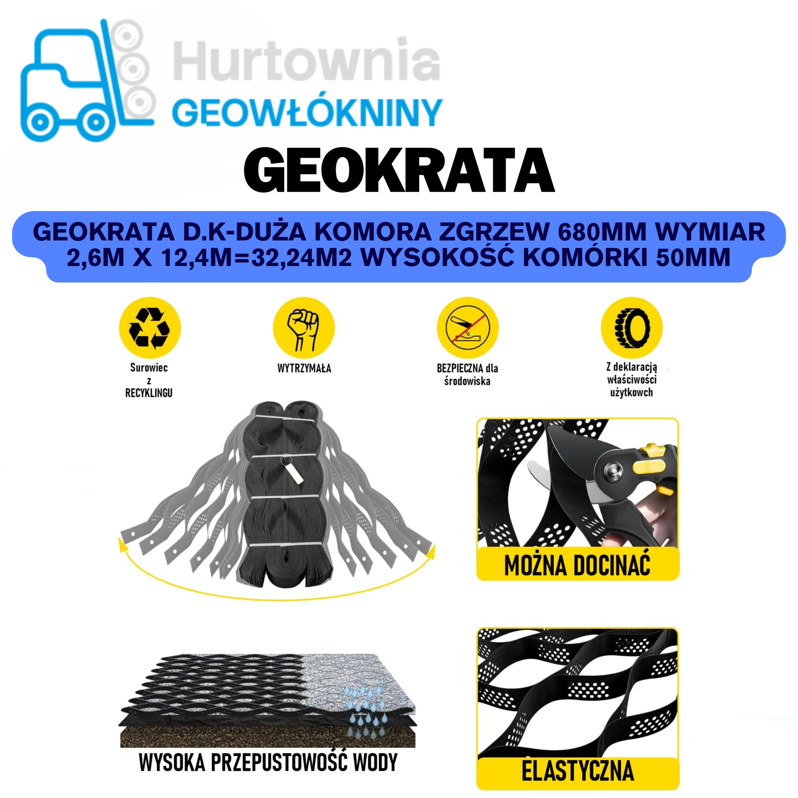 GEOKRATA D.K-Duża Komora Zgrzew 680mm wymiar 2,6m x 12,4m=32,24m2 wysokość komórki 50mm